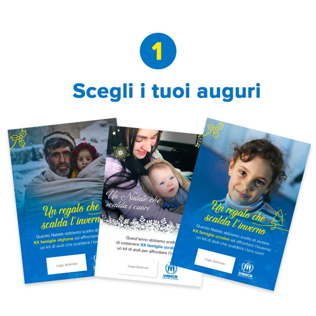 Questo Natale, rendi speciali gli auguri aziendali con le cartoline e le lettere d’auguri solidali di UNHCR: regalerai un aiuto concreto per le famiglie costrette ad abbandonare le proprie case e che oggi vivono sfollate.
